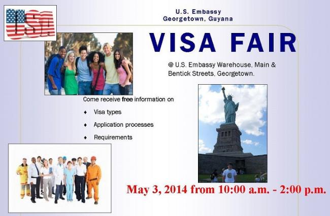 U.S. Embassy Georgetown, Guyana, Visa Fair By admin - April 30, 2014 0 233 FacebookTwitterPinterestWhatsAppEmail Related Posts:Consular Section, U.S. Embassy Georgetown - Press ReleaseChanges to the Non-immigrant Visa Appointment and Payment…Diversity Visa Scammers Sending Fraudulent Emails and…U.S. Embassy in Georgetown, Guyana to host Visa Fair